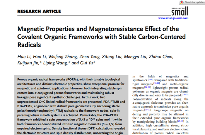 Magnetic Properties and Magnetoresistance E?ect of the Covalent Organic Frameworks with Stable Carbon-Centered Radicals