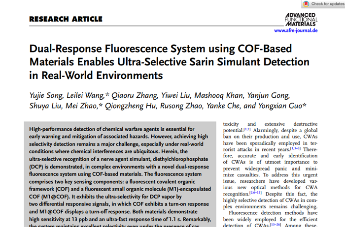Dual-Response Fluorescence System using COF-Based Materials Enables Ultra-Selective Sarin Simulant Detection in Real-World Environments