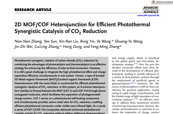 2D MOF/COF Heterojunction for E?cient Photothermal Synergistic Catalysis of CO2 Reduction