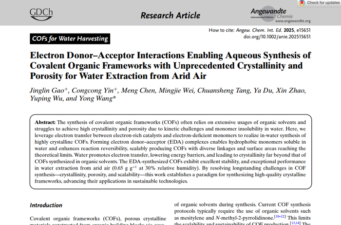 Electron Donor–Acceptor Interactions Enabling Aqueous Synthesis of Covalent Organic Frameworks with Unprecedented Crystallinity and Porosity for Water Extraction from AridAir