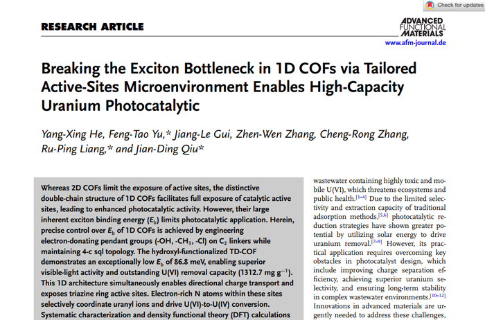 Breaking the Exciton Bottleneck in 1D COFs via Tailored Active-Sites Microenvironment Enables High-Capacity Uranium Photocatalytic