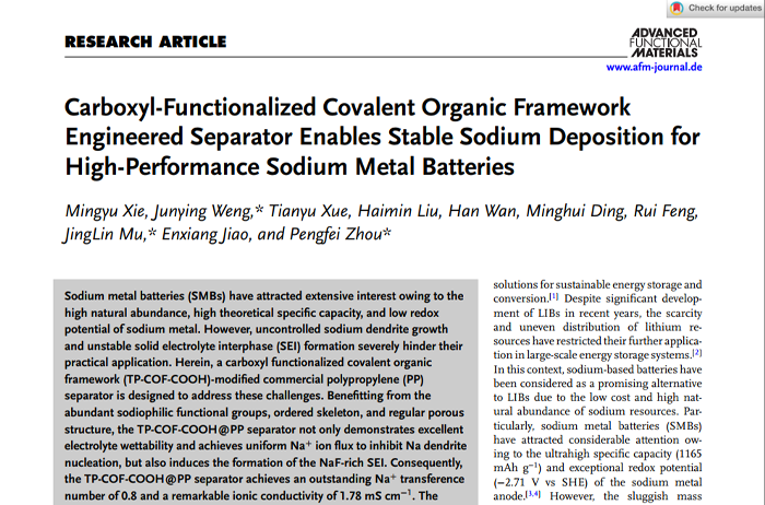Carboxyl-Functionalized Covalent Organic Framework Engineered Separator Enables Stable Sodium Deposition for High-Performance Sodium Metal Batteries