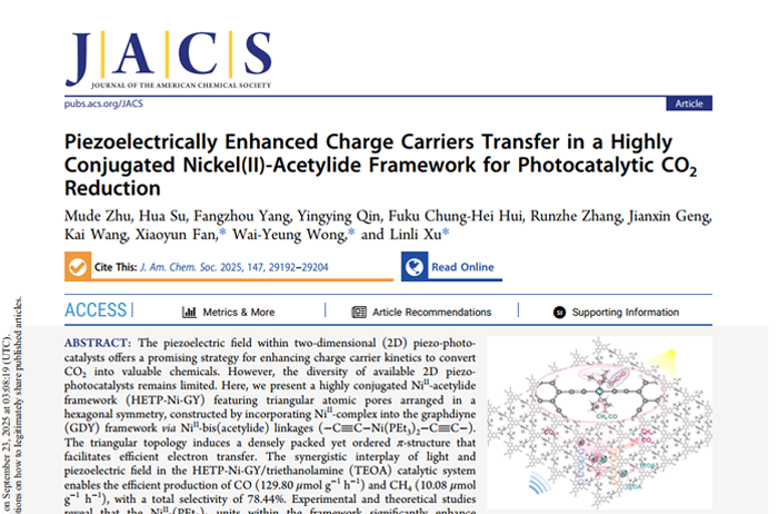 Piezoelectrically Enhanced Charge Carriers Transfer in a Highly Conjugated Nickel(II)-Acetylide Framework for Photocatalytic CO2 Reduction